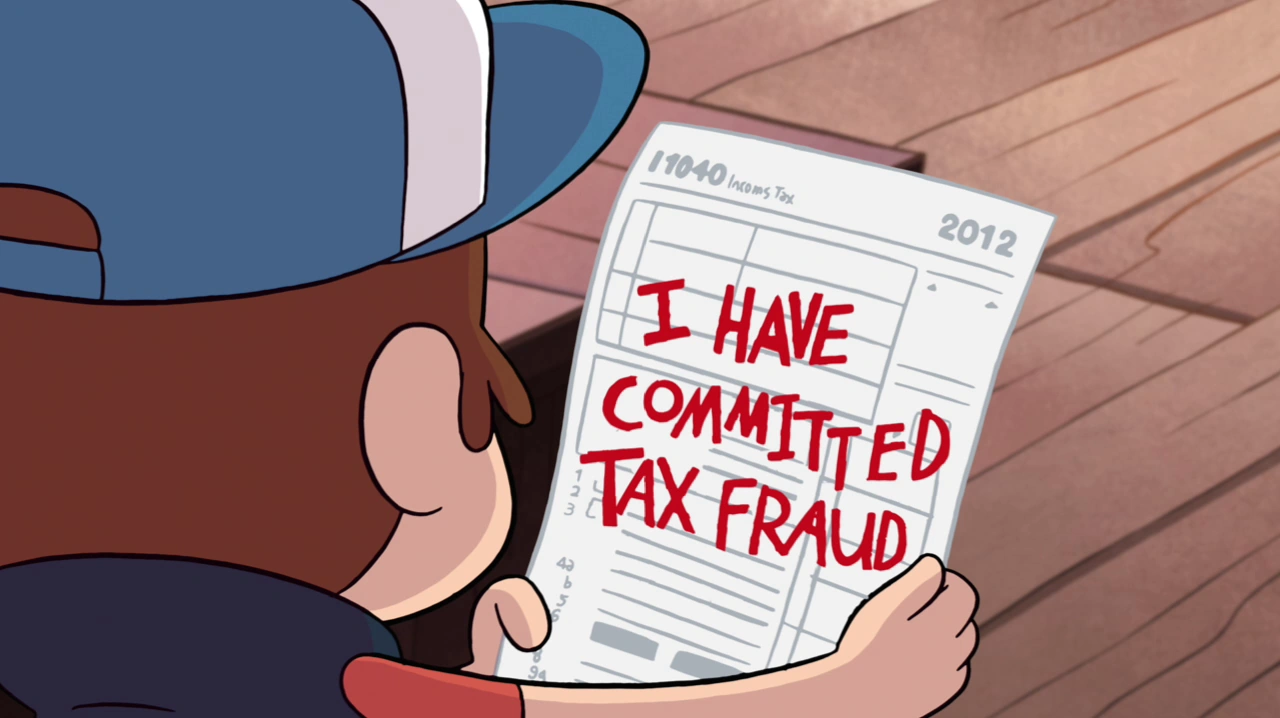 Stan's truth telling soon grows out of hand and without a filter, going to the extent of insulting a customer's appearance, writing that he commits massive tax fraud on a tax form, scaring the twins with a talk about death, and so forth. Stan's boundless honesty quickly grows to annoy the twins, and nearly gets him arrested as he admits to several crimes when Sheriff Blubs and Deputy Durland arrive to interrogate him about his seeing-eye bear and the nonexistence of Dr. Medicine. Mabel reluctantly lies to cover for her uncle, saying that he is secretly a crime fiction author and was telling them about a character in his upcoming book, and sends the officers away. Mabel is shocked at herself for lying, but Dipper says it was for the greater good, and Stan, still unable to fib, calls the police station to admit to tax fraud before the twins tackle him to stop him. Mabel then removes the teeth from Stan's mouth and disposes of them, along with a box full of other magical items, into the pit, saying she never saw the box again. But then spots it in the pit. Additionally, Soos finds the shoes he got rid of earlier in the episode.