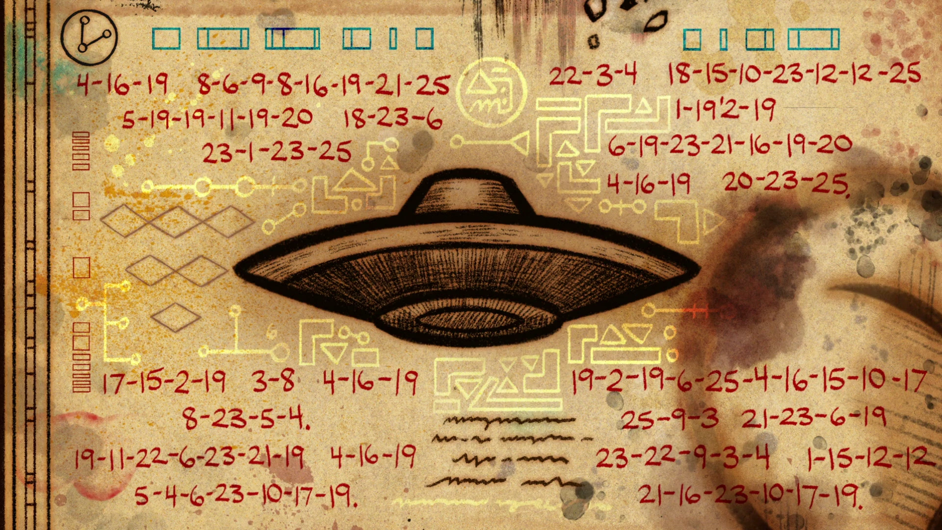 - Along one of the pipes in the UFO, a cipher written in Bill's symbol substitution cipher reads, "