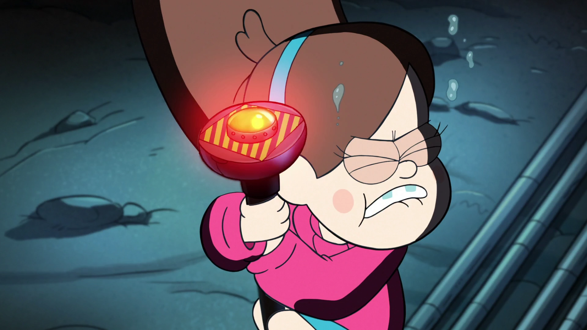 Right when they're about to hit the override button, Stan shows up begging them not to push it and saying that he will explain. Dipper refuses to believe him, and then another gravity anomaly occurs, lifting everyone up into the air. Mabel makes it to the shut-off button, with Dipper telling her not to trust Stan and push it. Stan begs Mabel to trust him and attempts to approach her only to be restrained by Dipper and Soos. After another fluctuation pins them against a wall, Stan begs her again to not press the button, asking her if she really believes he's a bad guy. Mabel cries at the decision she has to make. Finally, Mabel tearfully decides to trust him and lets herself float away from the override, much to Dipper's dismay.