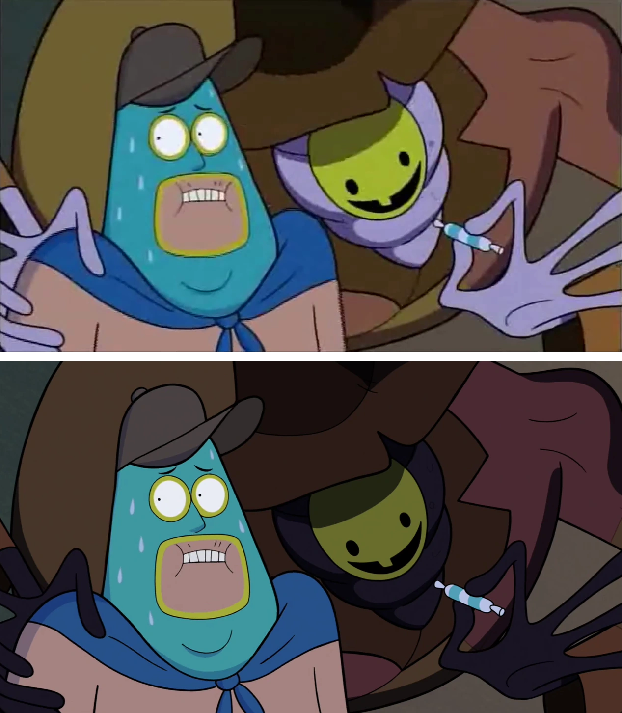 - In the promo for "Summerween," the Trickster is colored a much brighter purple than in the actual episode. His mask and clothes are also noticeably brighter.