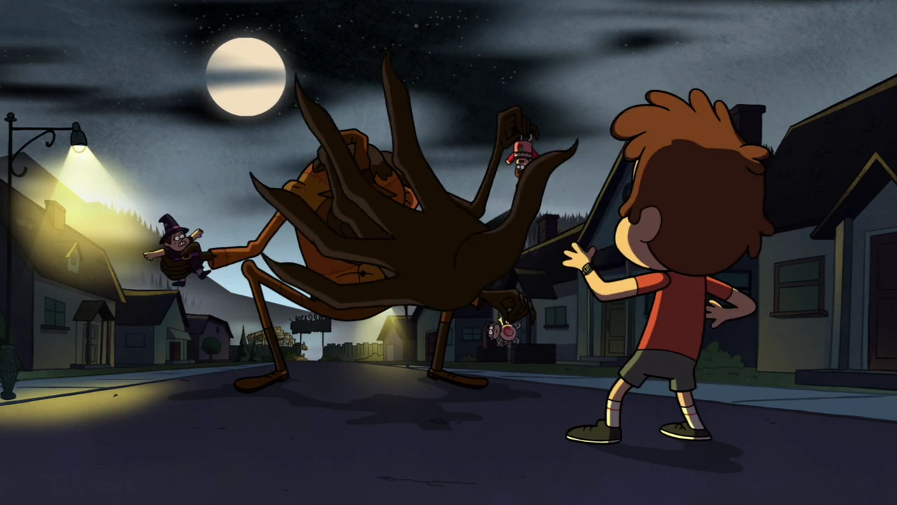 The kids are eventually able to obtain enough pieces of candy, but when Dipper hides the candy by pushing it into a nearby bush as Wendy passes by, he later discovers that the candy had fallen into a river. The Summerween Trickster then finally confronts the children, upset to discover that the candy had been lost. He then attempts to devour the children, but is smashed apart by Soos in a pickup truck. Convinced that the monster is done for, they drive away with Soos, only for the pieces of the Trickster to reassemble into an even more hideous, malformed beast.